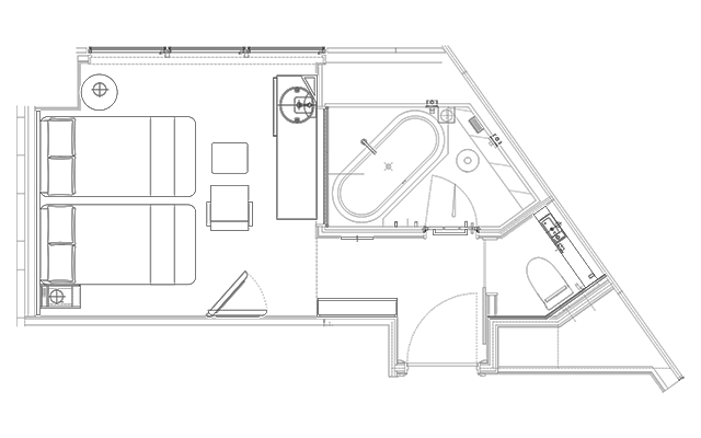 位于4-11楼的宽敞双床间。