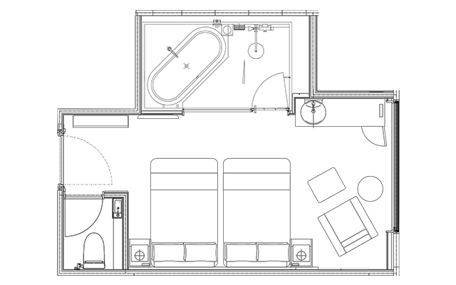 不论夫妻或朋友、观光或商务使用,可满足各种需求的房间。