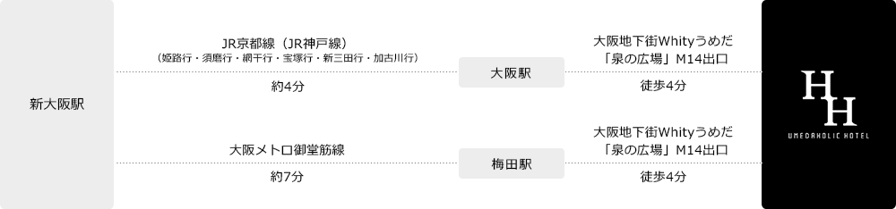 ·从大阪站·梅田站出大阪地下街Whity梅田“泉之广场”M14出口步行4分钟