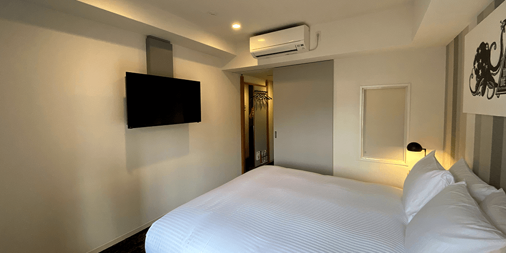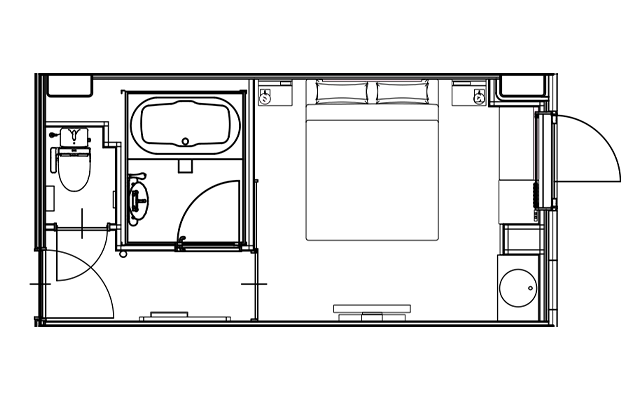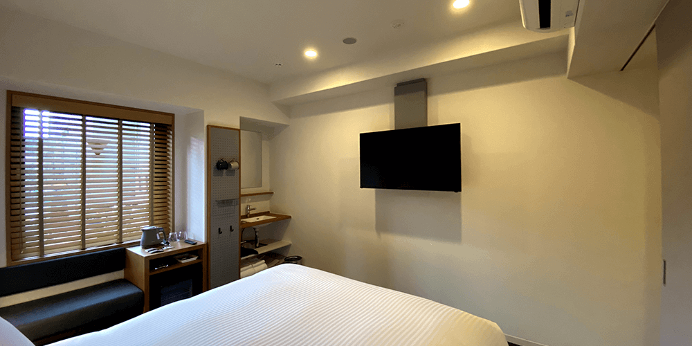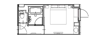 160cm宽的床,保证您舒适的睡眠。最适合一个人商务使用的房间。