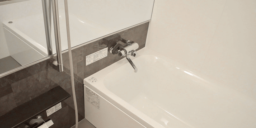浴缸和冲洗处分开的浴室。宽敞的浴缸两个人也可以进去。